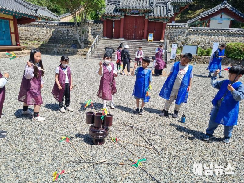 ‘희희낙락 향교’ 프로그램에서는 해남 유생복을 입고 투호 던지기, 윷놀이, 제기차기, 비석치기 등 오감만족 전통 놀이 체험을 통해 옛 선인들이 살아 온 해남유생의 하루일과를 체험한다.