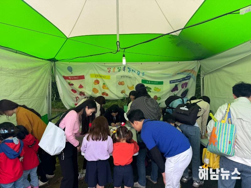 축제 기간 동안 각 지역에서 방문한 어린이(약 590여명)를 대상으로 오색 컬러푸드에 대한 영양 교육 후 과일과 공룡 모양을 이용한 팔찌만들기 연계활동을 통해 어린이들이 오색 과일에 친숙함을 가지고 골고루 먹을 수 있도록 유도하였다.