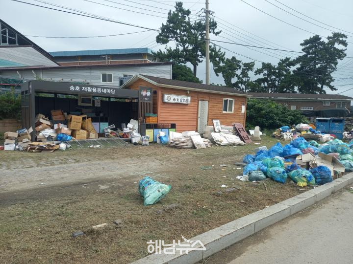 ![]() 송지면 관광지에 널부러진 쓰레기 / 사진제공=해남뉴스 |
