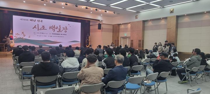 이어 명현관 해남군수는 축사에서 “제18회 해남 전국 시조백일장 개최를 진심으로 축하드리며, 오늘 이 자리가 시조의 아름다움과 소중함을 함께 느끼는 뜻깊은 시간이 되길 바란다.”고 말했다.