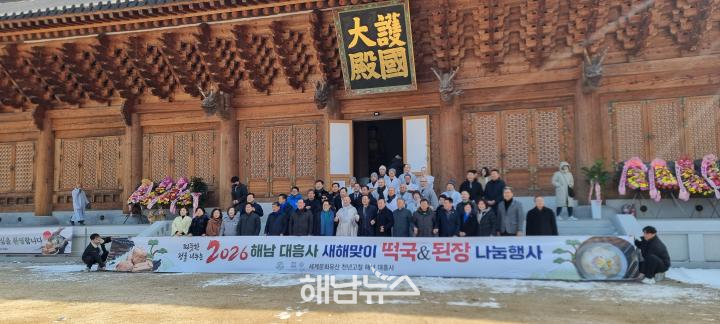 ![]() 2026년 1월 3일 대흥사 떡국, 된장 나눔 행사 / 사진제공=해남뉴스 |