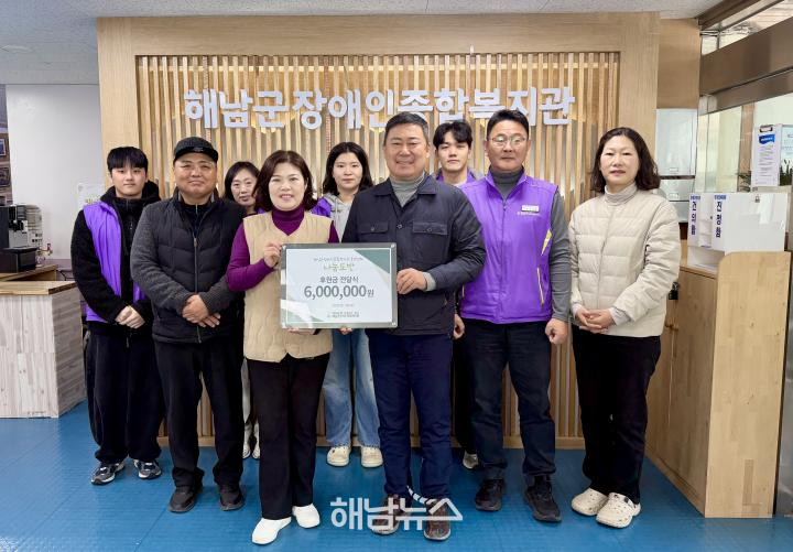 The Haenam County Welfare Center for the Disabled (Director: Kim Do-young) announced that its supporters’ association, Nanumdoban, donated KRW 6 million on December 31 to help improve welfare services for people with disabilities in the local community.