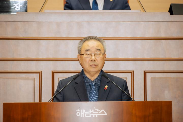 ![]() 박종부 의원 5분 자유발언 / 사진제공=해남군의회 |