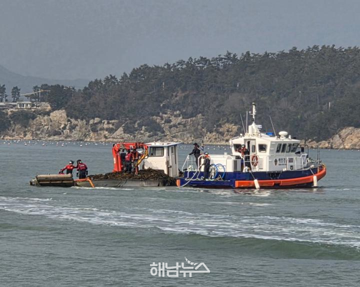 선체 침하를 막기 위해 A호에 적재돼 있던 미역을 바다로 옮겨 선체 하중을 줄이고, 배수펌프를 가동해 선내로 유입된 해수를 제거했다.