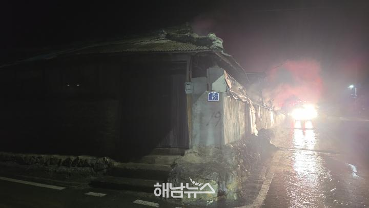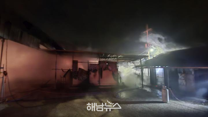 해남군 북평면 와룡리에서 새벽 시간대 창고 화재가 발생해 주민들이 놀란 가슴을 쓸어내렸다.